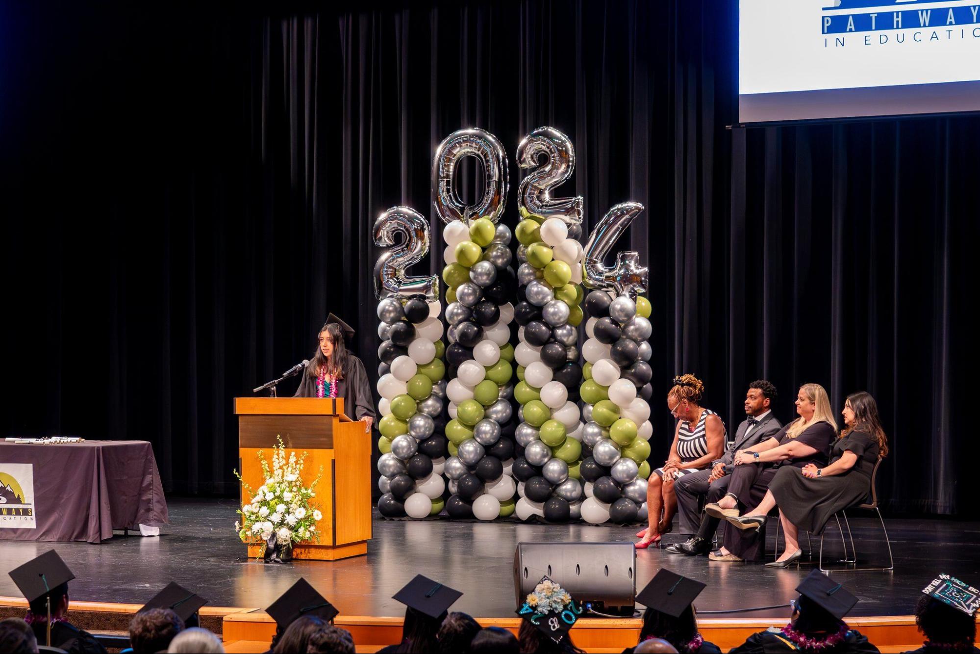 Connie Alejandre Castaneda speaking to her Graduating Class of 2024 at Pathways In Education- Arizona. (Source: Pathways In Education)